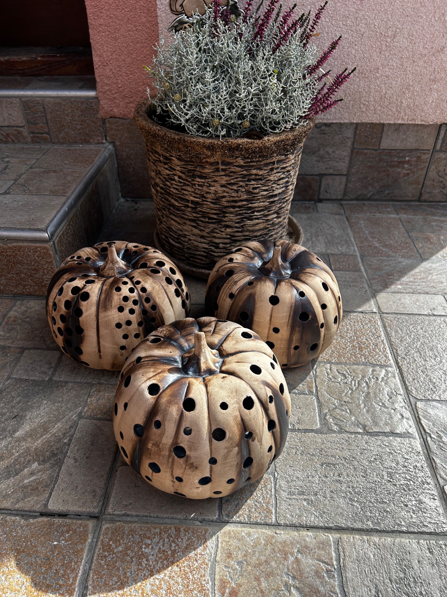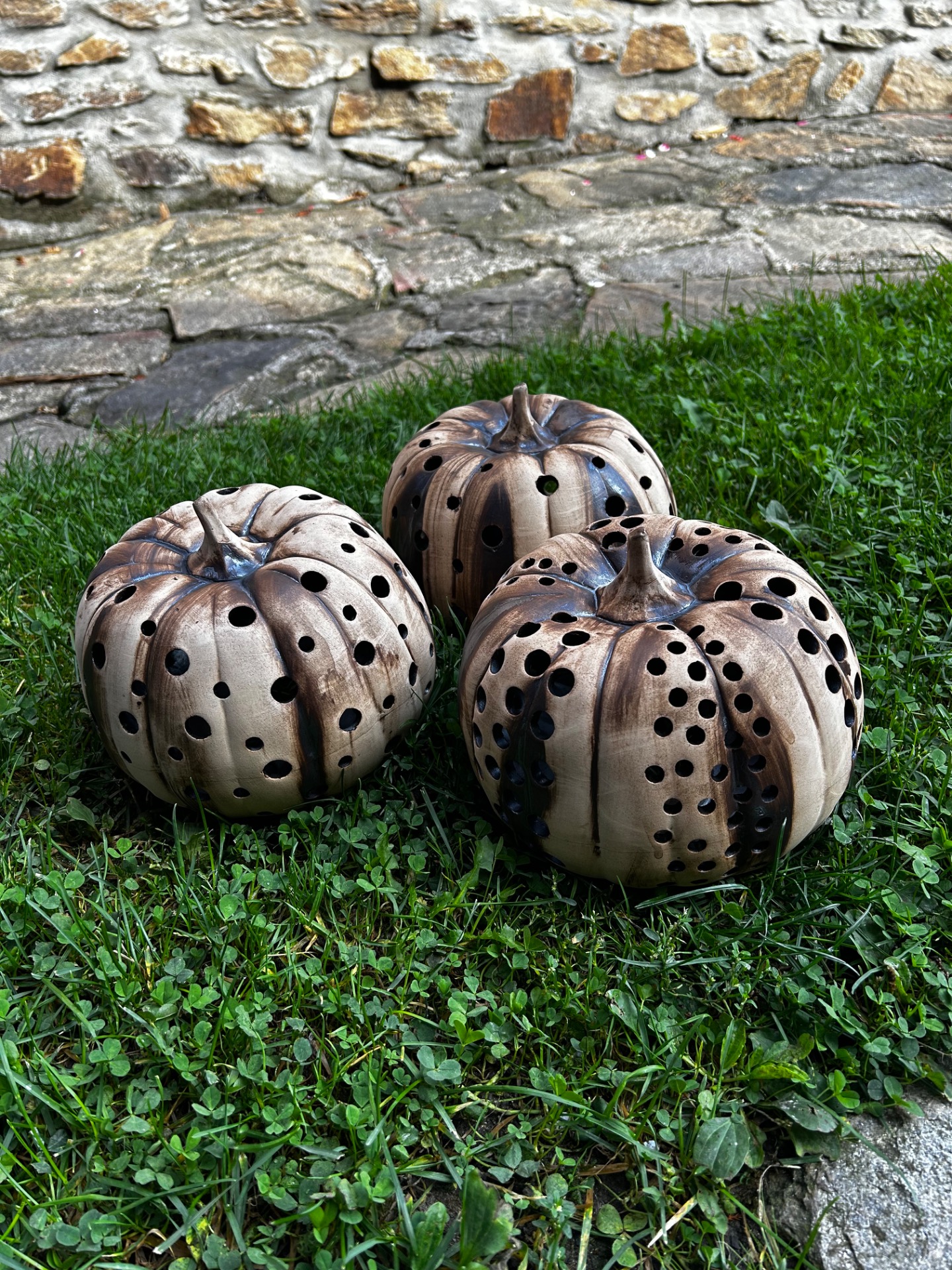 keramická dýně na čajovou svíčku průměr 22 cm výška 17 cm každá dýně je ručně prořezávaná a barvená mohou se trochu lišit