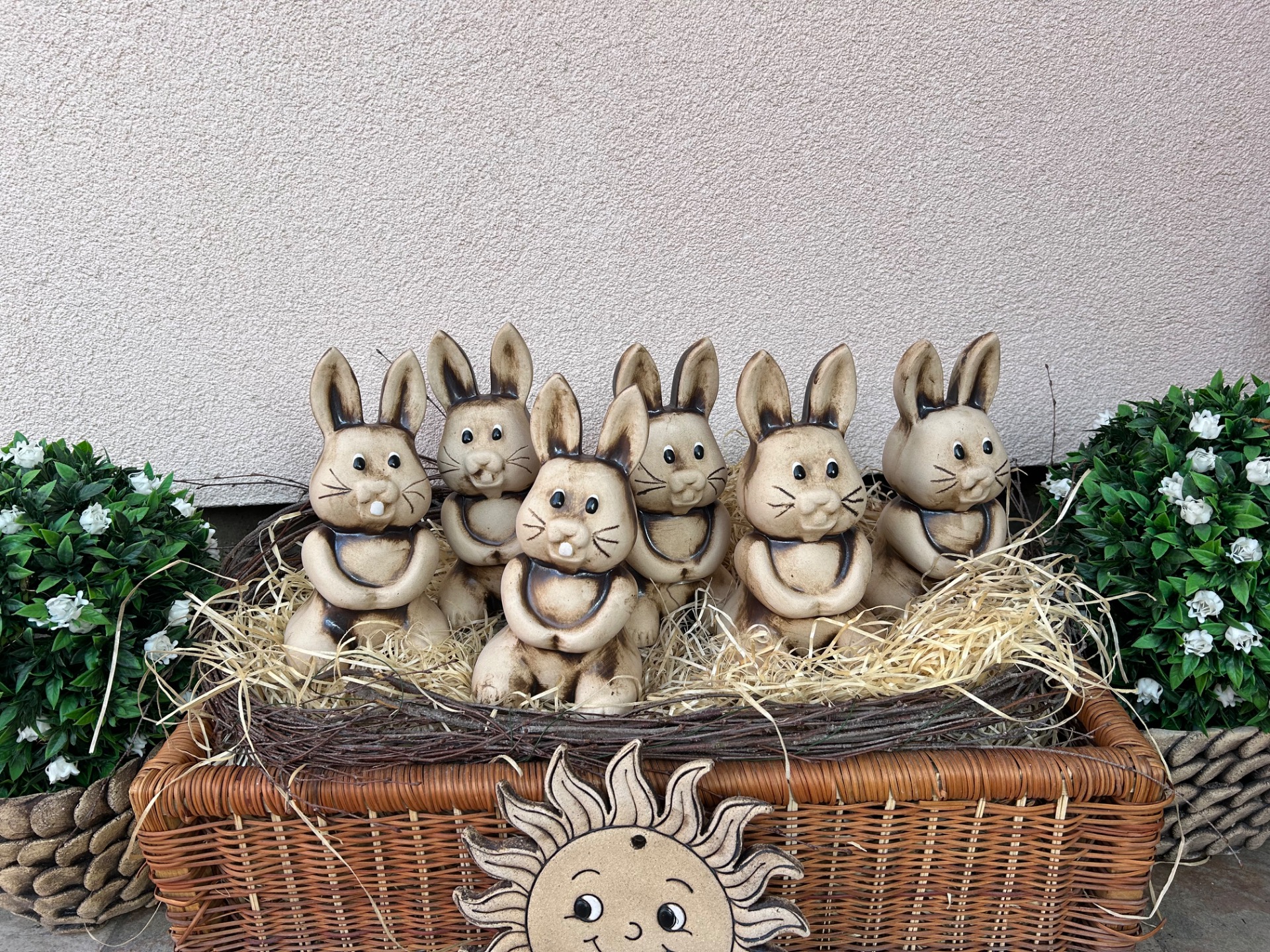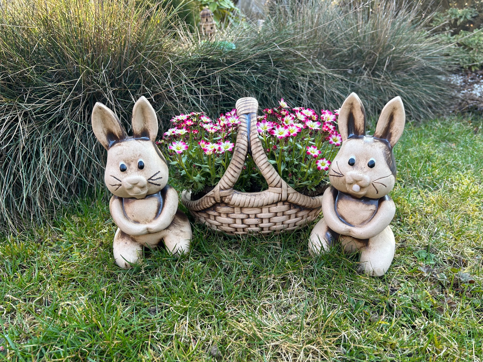 Roztomilý keramický zajíček je ideální jarní a velikonoční dekorací do interiéru i na zahradu. Díky přírodnímu vzhledu a jemnému zpracování krásně doplní květinové aranžmá, truhlíky nebo slavnostní výzdobu.