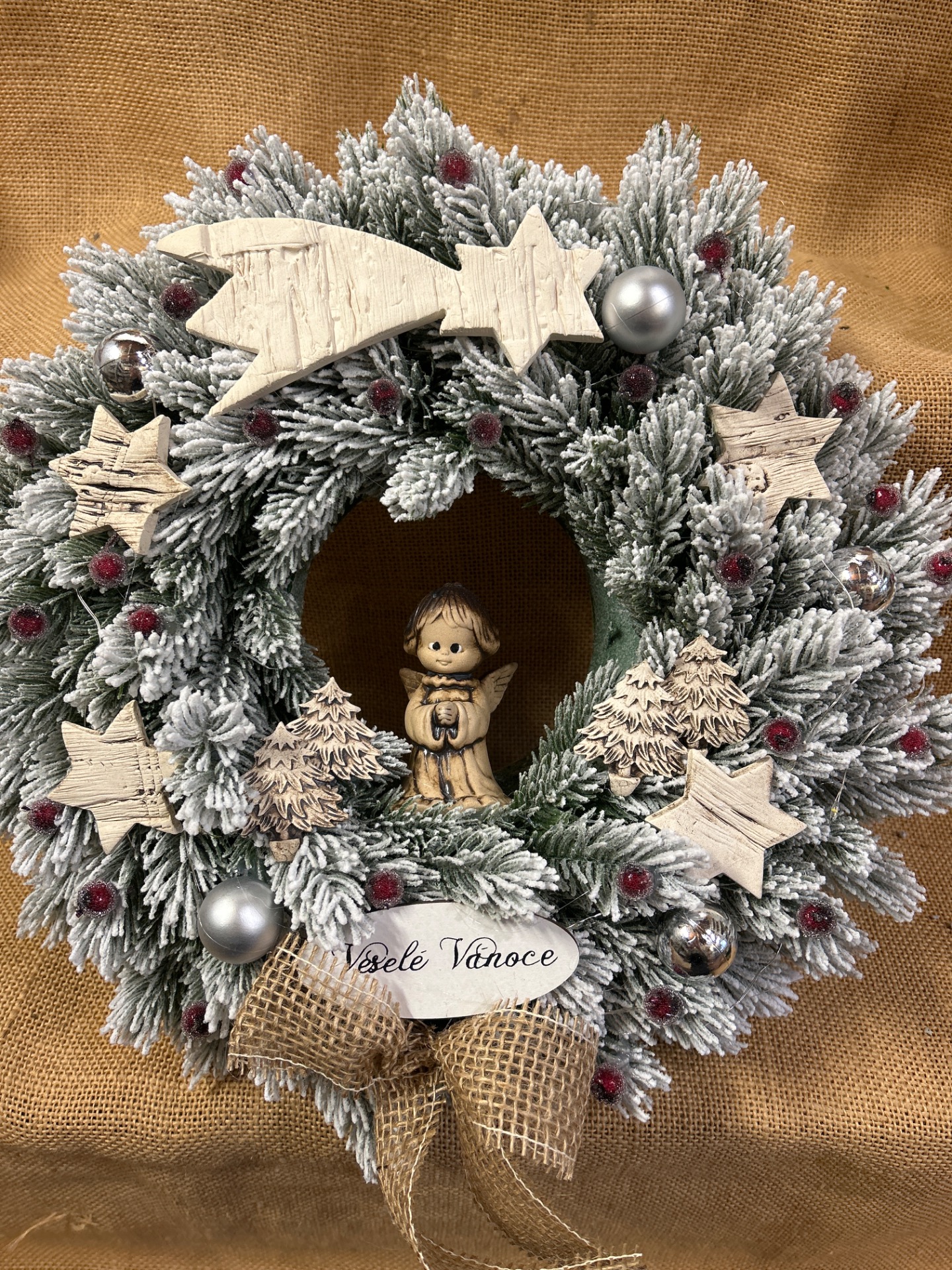 krásný věnec ledově červeno stříbrný průmer 40 cm