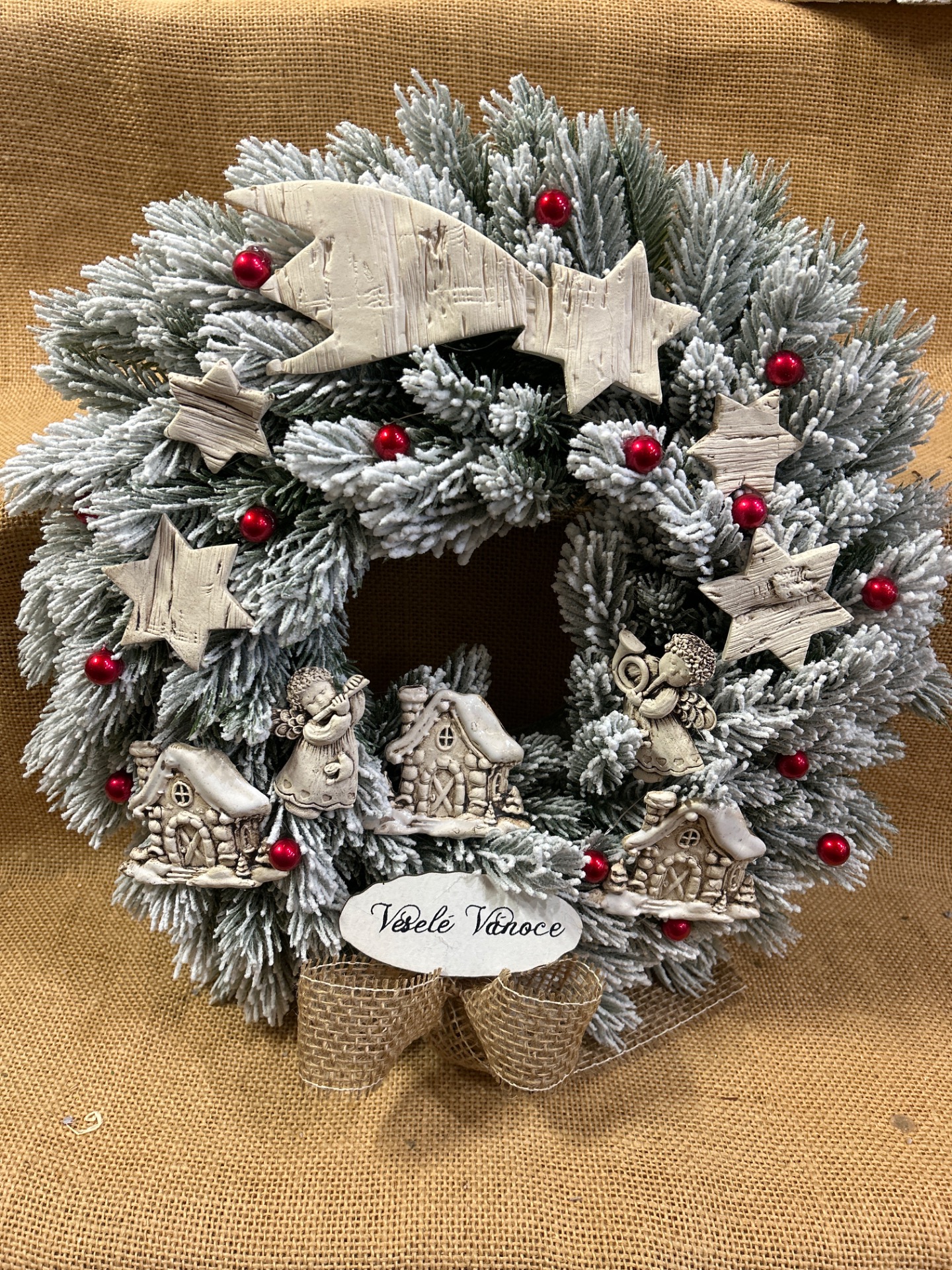 věnec 40 cm průmer osvetlený bohatě zdobený keramikou