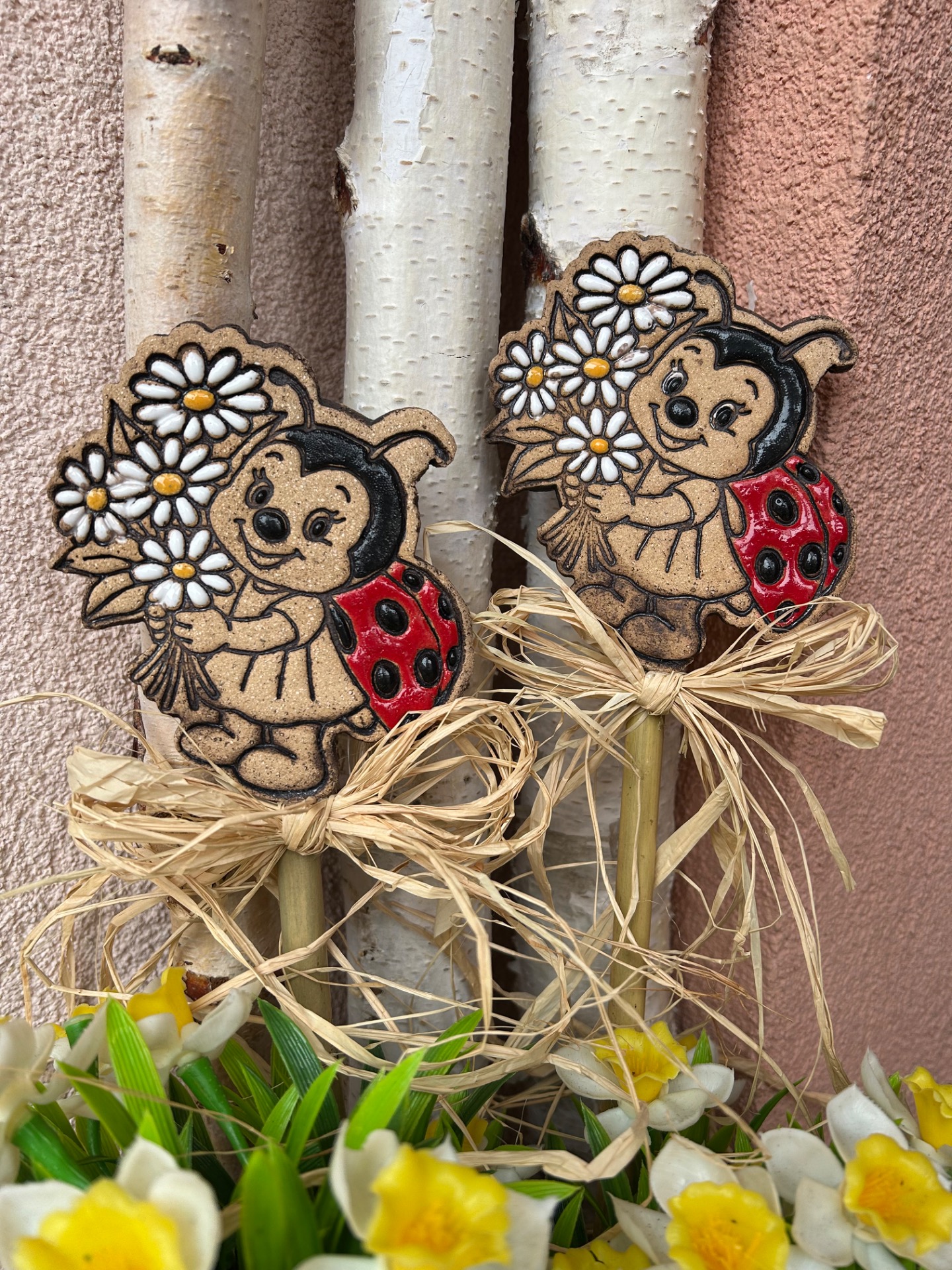 velikost berušky 12 cm přilepená na bambusové tyčce