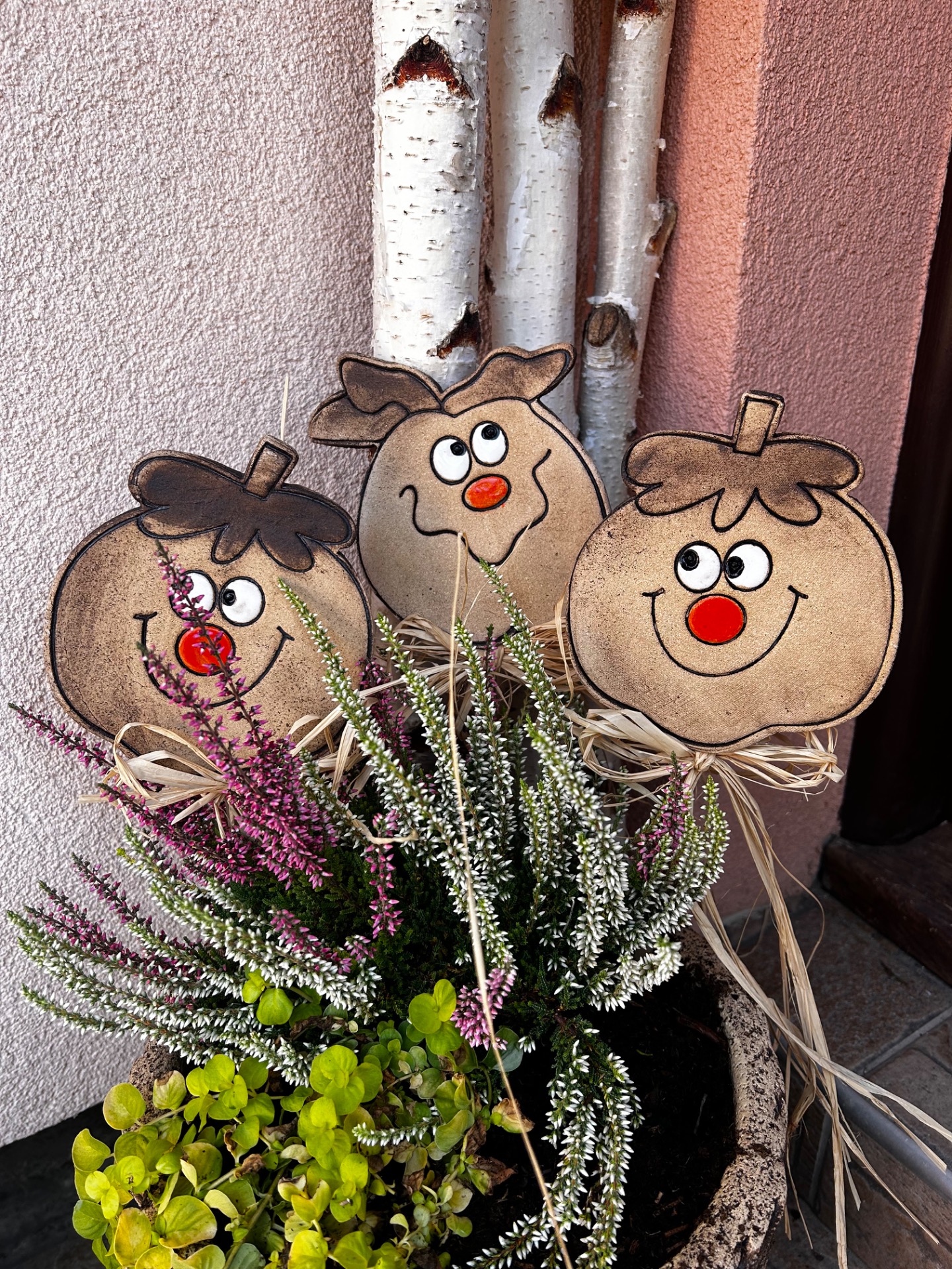 dýně zápich na bambusové tyčce nalepený velikost 15 cm jsou 3 druhy -náhodný výběr