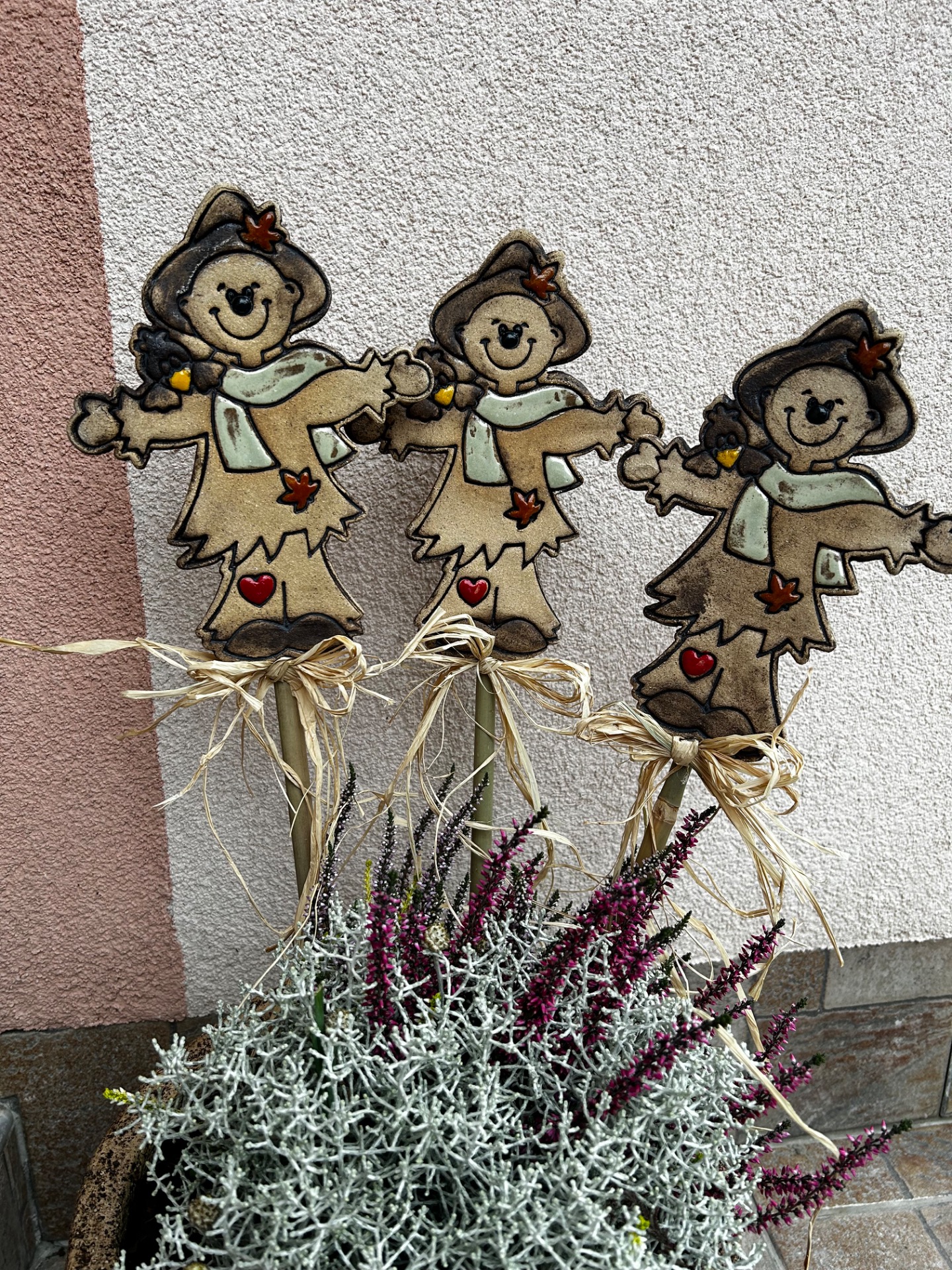 strašák do truhlíků velikost 20 cm přilepený na bambusové tyčce