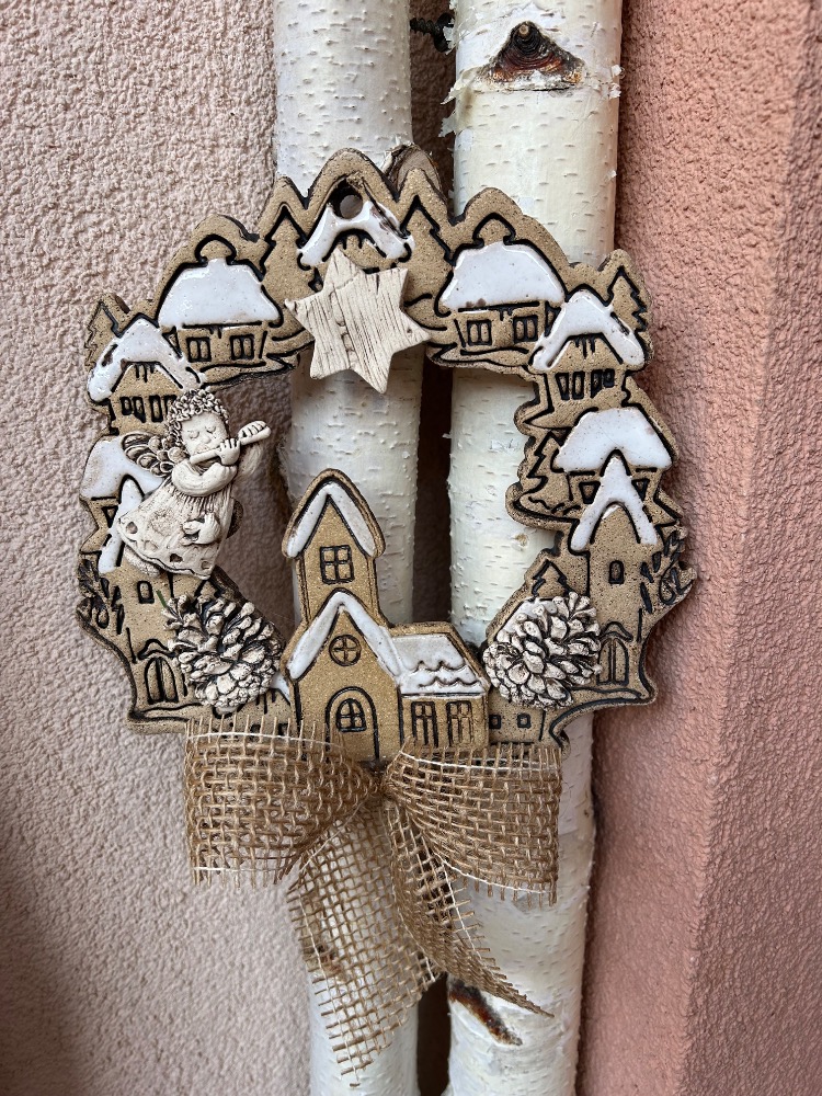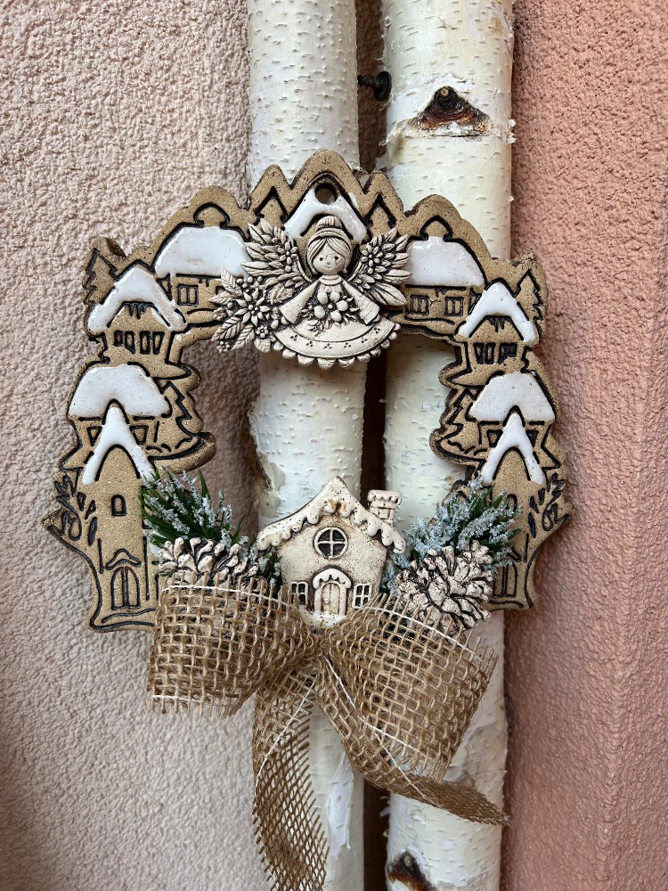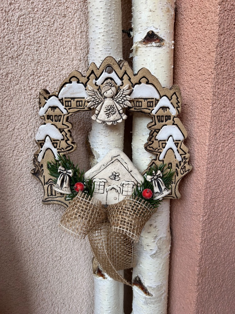Keramický věneček -chaloupka s anděly a křídly (11)